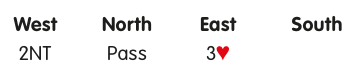 If East’s 3 is a transfer, showing spades (or has any meaning other than a natural heart suit), West should alert immediately after the bid (ie before South has had the chance to call). West should explain the meaning of the 3 bid only in reply to an enquiry by one of the opponents.