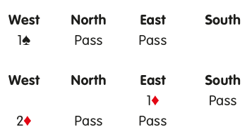In the second example, it is particularly attractive for South to take some action. This is because East-West’s known fit in diamonds increases the chance of a North-South fit somewhere whilst minimising the risk that action by South will push East-West into a better contract.