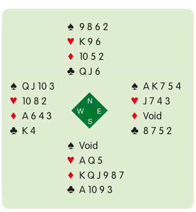 South plays in 5♦. West leads a spade at trick one and continues spades after getting in with the ♦A and ♣K. Having started with two trumps more than West, ruffing three times means that declarer ends up with one trump fewer and the contract fails.