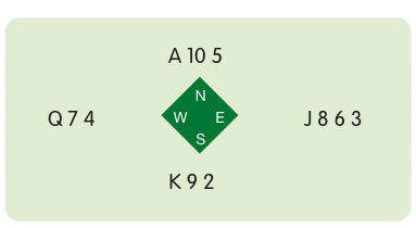 If West or East leads this suit, North- South make three tricks. If North or South leads the suit, East-West make a third-round winner.