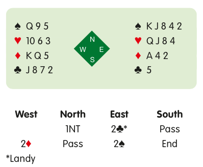 A conventional defence to a 1NT opener whereby 2♣ shows at least 5-4 in the majors. In reply, partner usually shows preference between the majors or, with equal length, bids an artificial 2♦, asking for the overcaller’s longer major.