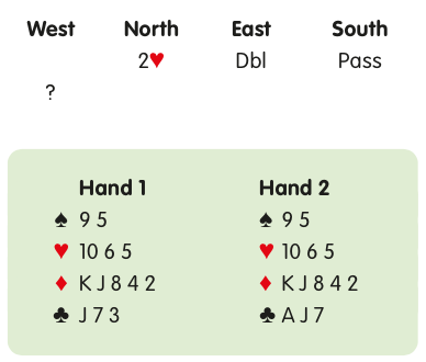 On both hands, you bid 2NT over the intervening 2♥. On the first hand, you intend to convert 3♣ to 3♦, which will ask partner to pass. On the second, you intend to rebid 3♠ to invite game.