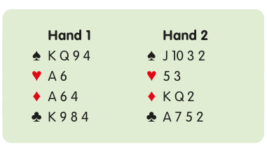 The first hand has six losers: one in each major and two in each minor. The second has eight losers, three in spades, two in hearts, one in diamonds and two in clubs.