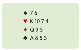 This hand is suitable for a negative double if partner opens one of a minor and RHO overcalls 1♠, or if partner opens 1♠ and RHO overcalls two of a minor.