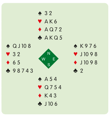 However, if you win the opening lead and then cash four clubs, only five tricks will have gone. Each player will have eight cards left, so anyone who started with four hearts and four diamonds will have no difficulty in retaining them and a squeeze will not operate. Instead, you duck the opening lead, win the spade continuation and then cash four clubs.