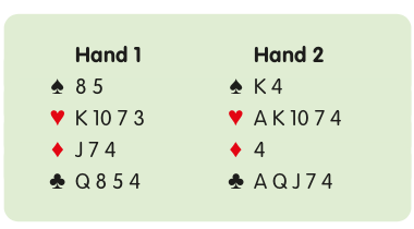 With the first hand, you respond 1♥ to 1♦ (or 1♣) but 1NT to 1♠. With the second hand, you respond 1♥ to 1♦ or 2♥ to 1♠.